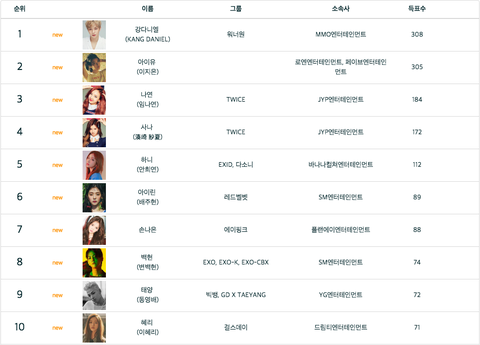 베스트아이돌 1차 투표 결과래여 ㅋ