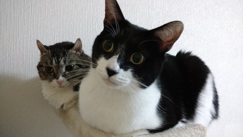 나나는 요즘 캣타워에 오르고 내리는 게 자연스러워졌어요.