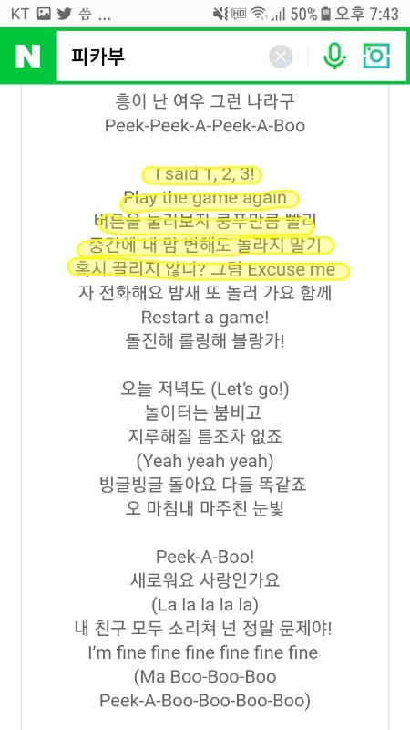 러룰이랑 피카부 노래랑 분위기자체가 다른데 버튼이 동시에 가사에 있다는점이랑 예리파트임..소름