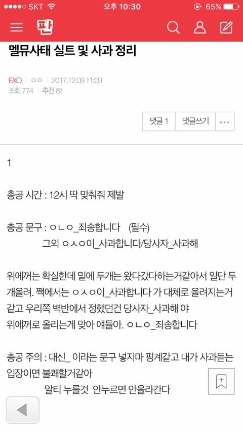 <3> 텐미닛 논란, 엑소 시상식 태도논란, 합성움짤 등 다른 루머는 추후 해명할 예정입니다. 또한 본문과 관련없는 내용의댓글은 가차없이 병먹금 처리할 예정이며 관련없는 팬덤관련댓글도 같은방법으로 처리할 예정이니 참고해주세요.