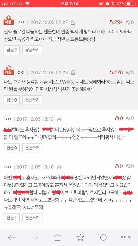 <5.> 어그로 팬코를 방지하기 위해 팬덤입장으로 댓글을 달때에는 꼭 팬인증을 가볍게 해주세요 아니면 병먹금 처리합니다
