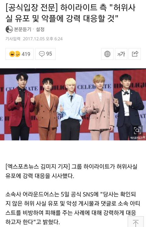 악플러들 고소한다고 메인기사뜸