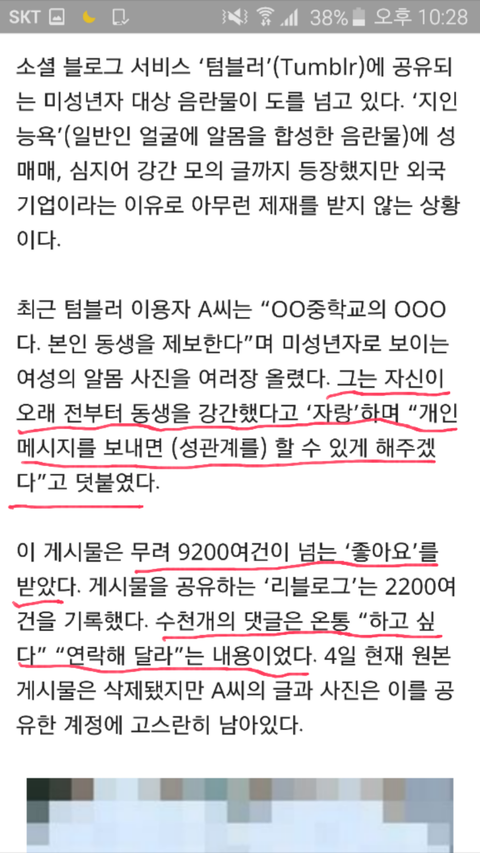 이건 진짜 아니잖아 ㅠㅠㅠㅠㅠㅠ 제발 사실이 아니라 주작이라고 말해줘......ㅠㅠ 나 진짜 이거 못믿겠어......저기 오빠 ㅅㄲ가 진짜 때려 죽여도 시원치않는 미친ㅅㄲ고 개또라이지만 저글에 "좋아요"눌린 횟수쫌봐.....ㅠㅠ 아 나 진짜 너무 소름돋고 저기 여동생분 생각하면 너무 슬퍼 ㅠㅠㅠㅠ 나도 오빠있지만......어떻게 지 친동생한테 저딴 쓰래기짓을 할수있는지 진짜 충격먹었어 ㅠㅠ 그리고 저 글 좋아요 숫자랑 댓글들에 또 소름돋았고......ㅠㅠㅠㅠ