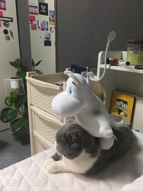타코의 친구가 되어준 무민이! 저 인형은 며칠 뒤 어딘가 우주에 존재하는 것 같은 타코의 보물상자 속으로 끌려들어가 자취를 감추었습니다..