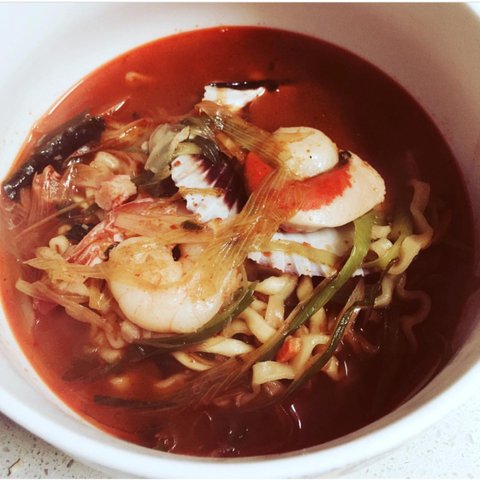 진*뽕에 길게썬 대파와 가리비랑 대하넣구 칼칼하게 끓여봤어요!
