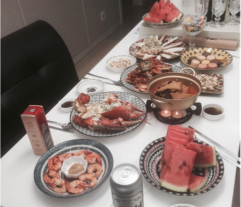 메뉴는 대게,랍스터,매운오뎅탕,골뱅이소면,대하구이,마카롱,피스타치오,수박입니다 ~!