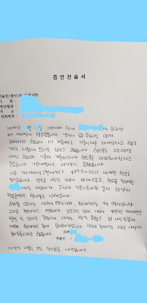 피해자 중 한명이 진술서를 작성하고 경찰서를 찾아갔어.고소하려니 형법상 사기가 아니라서 고소할 수가 없대.그리고 가입신청서에 이미 싸인을 했기 때문에 그 사실을 알고서 가입을 한거고.아무런 방법없이 써야하는거지.