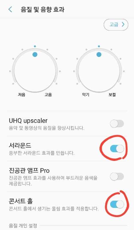 서라운드랑 콘서트 홀이랑 둘 다 눌러봐..