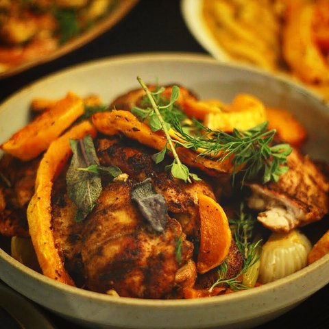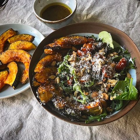 구은 단호박을 곁들인 샐러드.