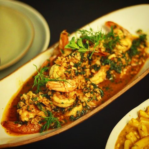 사진은 마늘과 칠리 그리고 각종 허브등 을 곁들인 새우볶음 요리입니다.