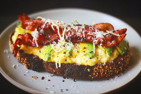 고든램지형님을 따라서 만들어본 스크램블드 에그와 아보카도 그리고 베이컨을 올린 토스트 입니다.