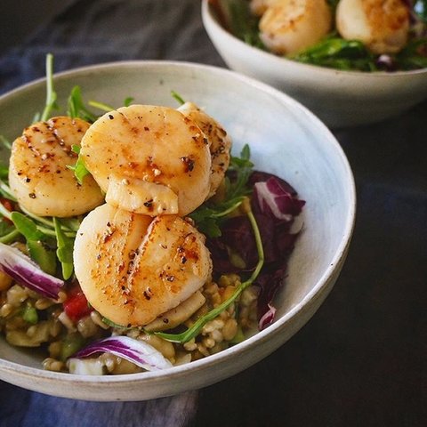 관자를 곁들인 퀴노아 샐러드 입니다.