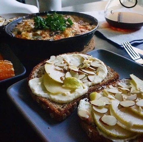 한때 오픈 샌드위치 / 토스트에 한참 빠져서 다양한 레시피를 시도해 본 적이 있는데 위에 사진은 배를 곁들인 리코타 치즈 토스트 입니다.