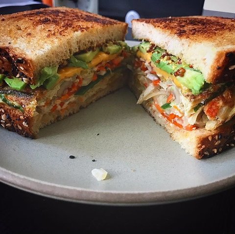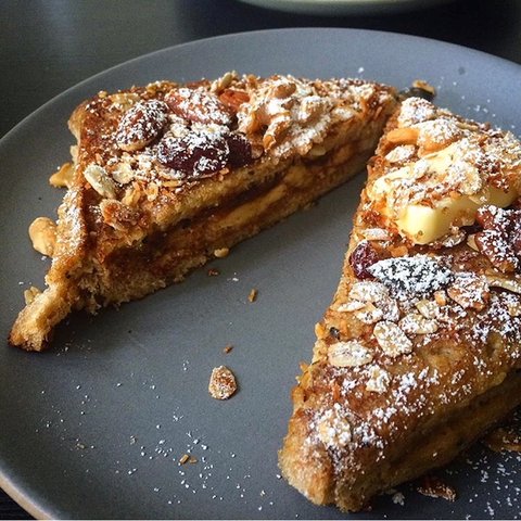 와이프한테 프렌치 토스트를 해주다가 속을 땅콩버터와 잼으로 채워서 한번 만들어봤습니다.