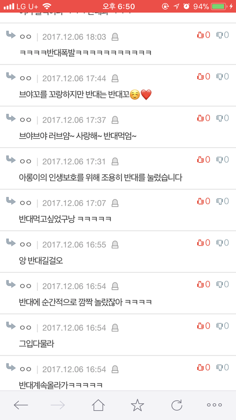 러브들 추천수보다 내 댓글 반대수가 더 많아서 놀래쪼