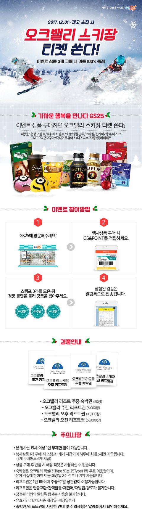 GS25에서 단체로 숙취음료 살 때 오크밸리 스키장 이벤트 권해줘서 해봤는데 바로 당첨 ㅋㅋ