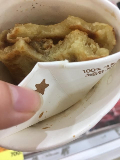 속이 미식거리네요 어디 식당에서 커피먹고 버린종이컵 줏어다가 호떡 담아주는거같은데