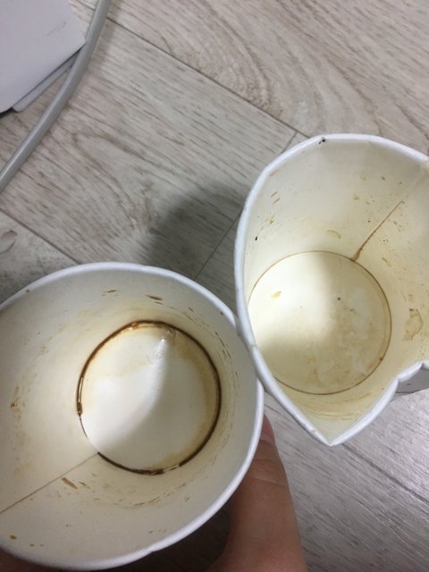 좀 태안나는 컵도아니고 완전히 커피찌든 종이컵을 구해서 쓴다는 발상자체가.. 너무 충격이고 알리고싶어서 판에까지 글을 썻네요 저도 아니에요 햇다고 그냥 받고 조금먹은게....윽.. 넘바보같네요 ㅠ바로앞에서 말햇는데 아니라한 그아줌마도 뻔뻔하고
