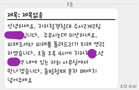 그러고는 한 1~2주 뒤에 경찰서에서 제 사건 조사를 실시한다고 티머니 분실에 대해 자세히 물어보셨습니다. 그런데 버스cctv는 1주일이면 사라져서 확인을 하기가 어렵다고 했습니다. 결국 편의점cctv 하나만으로 잡아야 하는 상황이였습니다. 저는 반 포기상태였습니다..