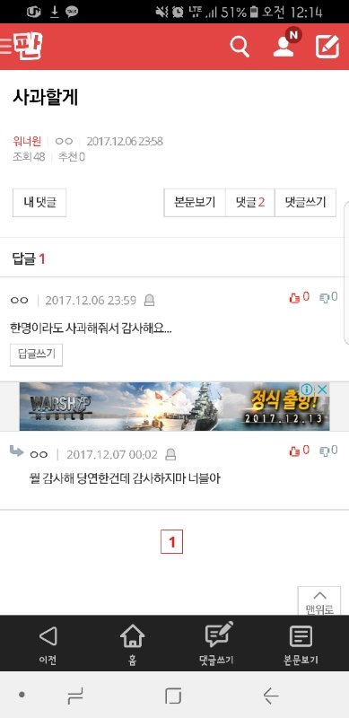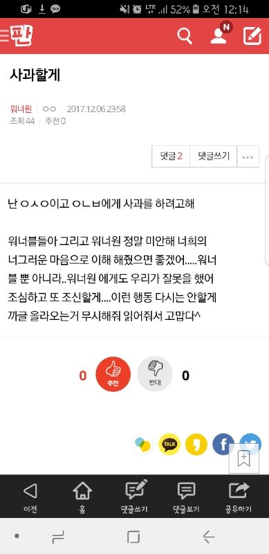 '사과할게' 밑밑밑글 들어가지마