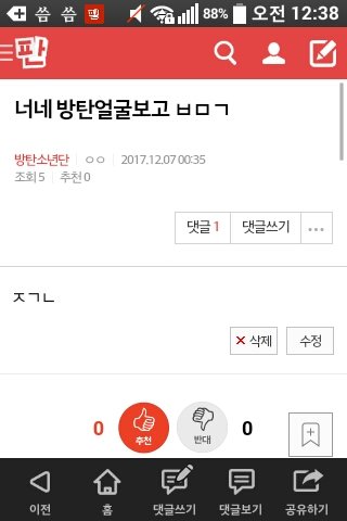 방탄ㅂㅁㄱ이 아니라 "너네 방탄얼굴보고"라는 글을 방탄못생겼다고 오해해서 쓴거야ㅠㅠ내가 글 잘못 읽어서 잘못ㅂㅁㄱ한거구 저 글 어그로 아니아ㅠㅠ어그로로 오해한 이삐있을까봐 올려ㅠㅠ지금은 저 글 지웠어!
