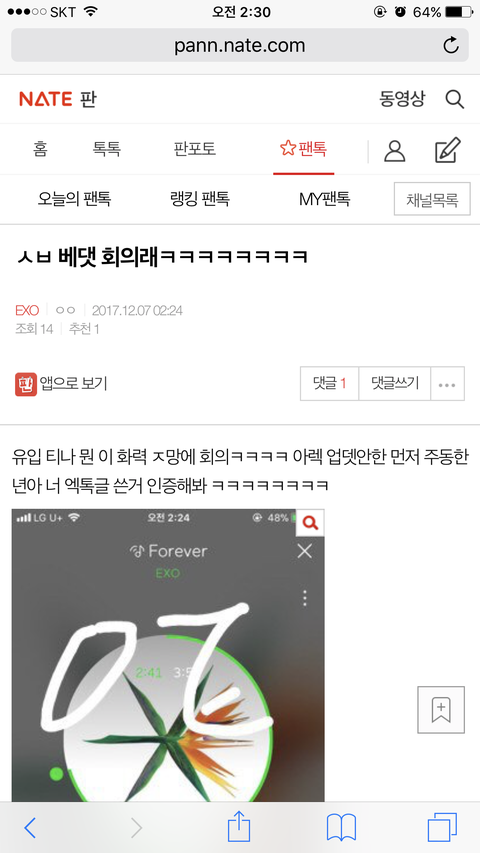 파생글 ㅈㅅ 너무 짜증나서 야 나와봐