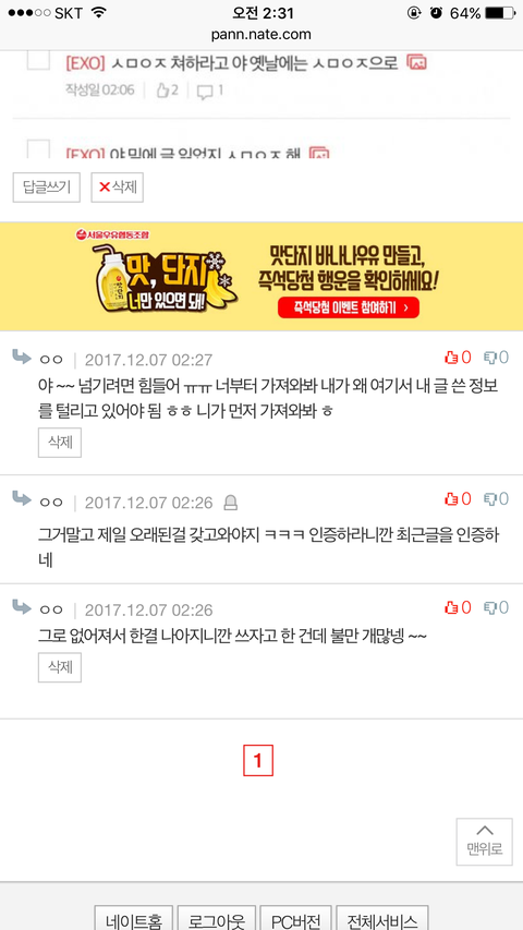 나도 올렸으니깐 니도 올려 제일 오래된 글