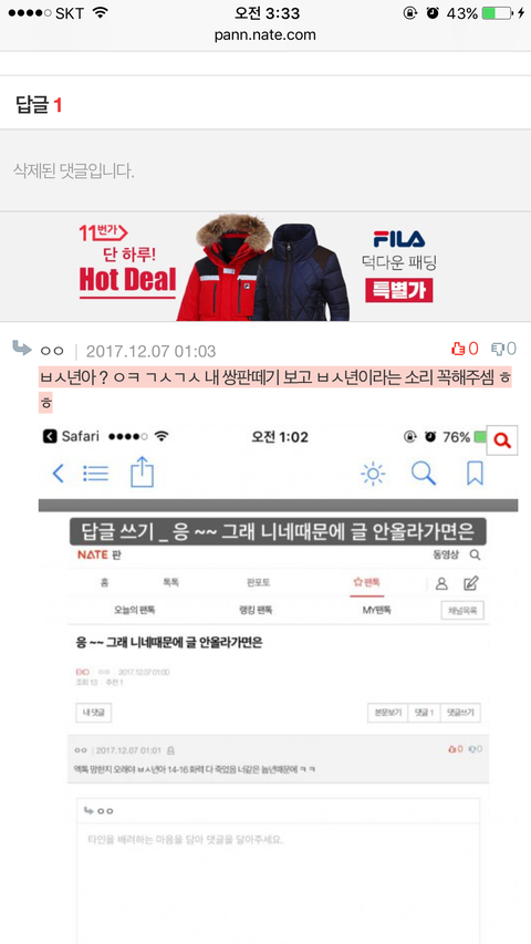 저때 상황 ㄹㅇ 개심각했다구 ㅠㅠ 회의하는데 아무도 말을 안쳐들어주는데 쟤는 쟤대로 낸테 욕하구 ㅠㅠ ㅅㅂ 너네 이 글 이후로 내 고소이야기 들먹이면서 고소고서 거리면 다 피디엪따서 고소해버릴거임 ㅋ