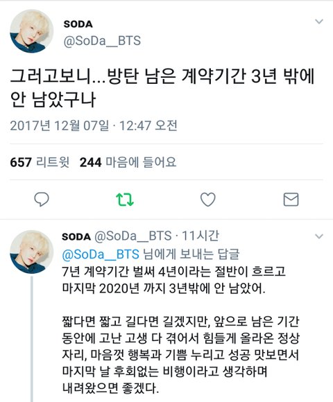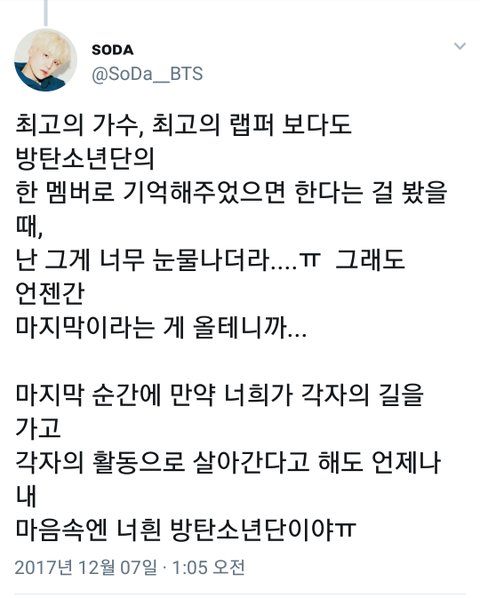이 트윗 아미의 글이 너무 공감가고 슬퍼..