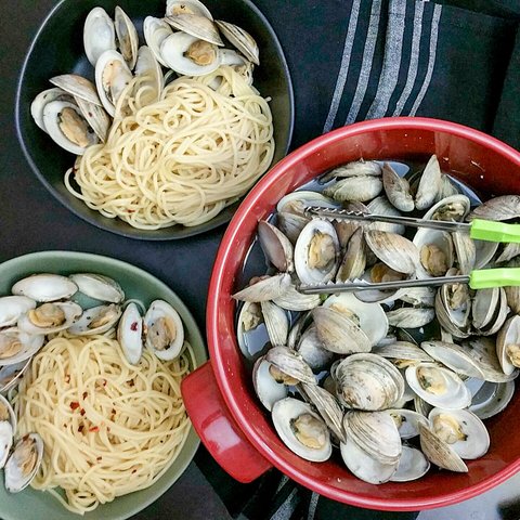 코스트코에서 사온 어마한 량의 조개 처치용 조개 술찜과 봉골레 파스타