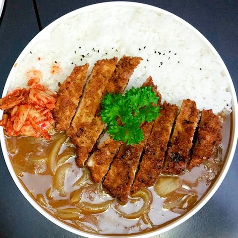돈까스 카레 덮밥. 빵가루 갈아서 만들어 더 바삭했어요!