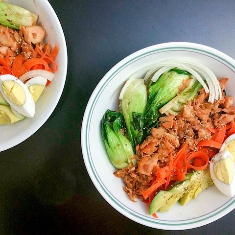 연어구이가 많이남아 다담날 후리카게 처럼 다시 볶아 만든 연어 덮밥.