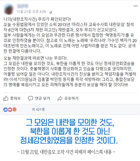 정권 바뀌었따고 바로 무죄나오네.....