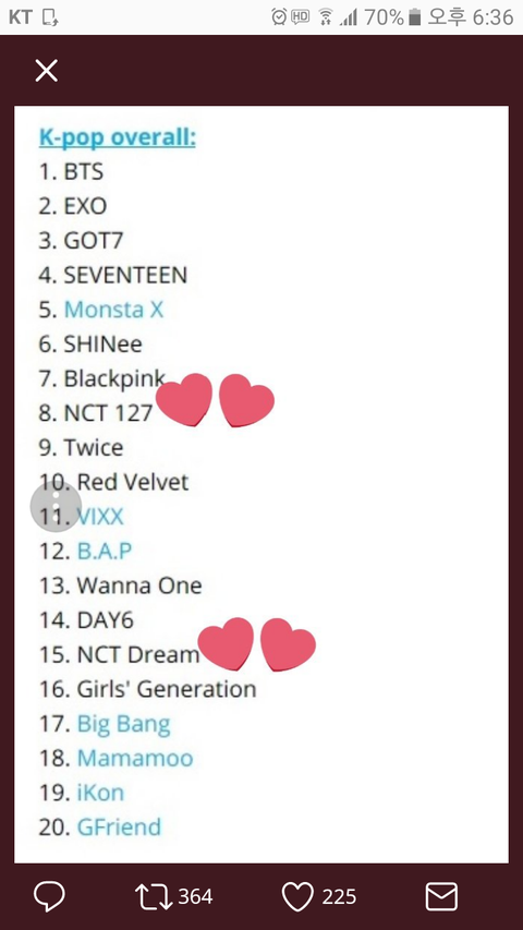 텀블러라고 북미에서 주로 쓰는 트윗같은 건데 2017년 많이 언급된 아이돌 순위래