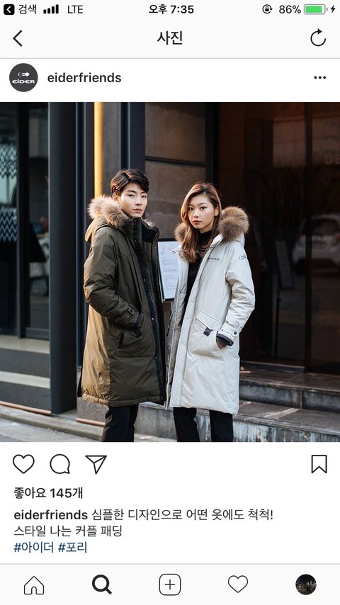 커플 패딩을 살려고 하는데..커플템은 색상도 같게 하는 게 이쁠까요?아니면 저렇게 같은 제품 색상만 다르게 입는게 예쁠까요??