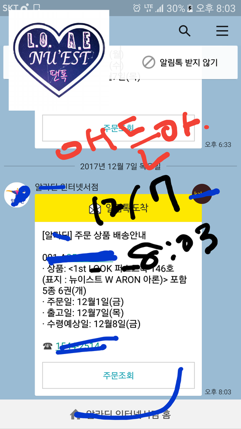 방금 깨똑왔어.