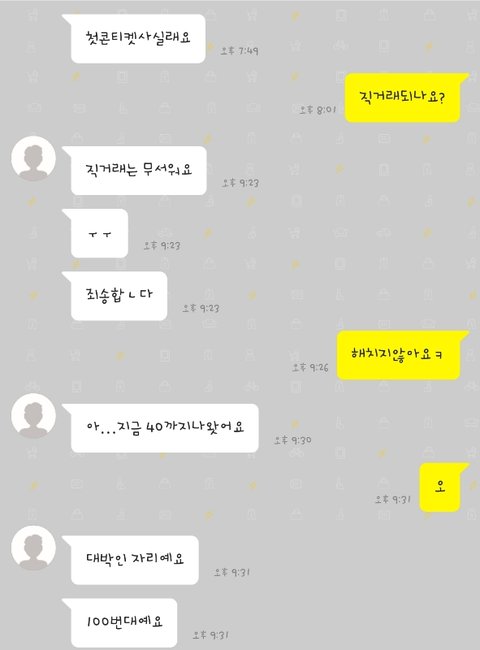 첫콘 티켓 구한다고 써놨는데 채팅창뜨길래 좋아했더니