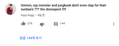방탄이 엑소무대보는 영상인데 RM이랑 정국이 마지막에 귓속말하느라 무대끝나고 박수못친걸로 까고 정색하면서 본다고 까고 댓글창 난리도아닌듯ㅋㅋㅋㅋㅋㅋㅋㅋㅋ참 방탄 리액션 좋은건 온 동네가 알지않냐 뭐 저런걸로 꼰대질이야 엑소가 방탄선배지 지네가 선배냐 ㅋㅋㅋㅋㅋㅋㅋㅋ엑소 방탄만 그런게 아니라 댓글창에서 꼰대질하는거 ㄹㅇ 지네가수 무대에 호응이 좋아야된다는 심보로 리액션구걸하는걸로밖에안보임ㅋㅋㅋㅋㅋㅋ ㅈㄴ웃긴다