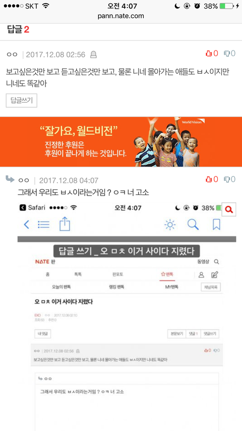 조팔 눈 가리고 아웅하는 거 그만두면 안 되나ㅠ