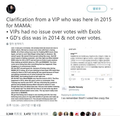 그리고 우리 2015년 앨범상이랑, 2013년 썩뮤 베스트송상은 우리가 받은 거 아무 문제도 없으니까 이것도 정리 좀 하자. 안티들이 그거 큰뱅 꺼인데 왜 우리가 받았냐면서 조카 뭐라 함