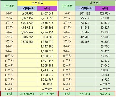 가온백위차트에서 조금 벗어났다고 무비 가능성 제로인거 아니니까 꼭 변경된스밍리스트로 꾸준히 돌립시다