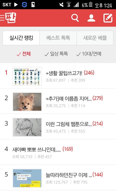 이라고치면 톡선같은거 볼 수 있데 ㅎㅎ