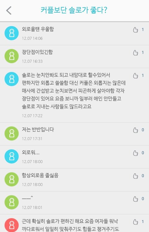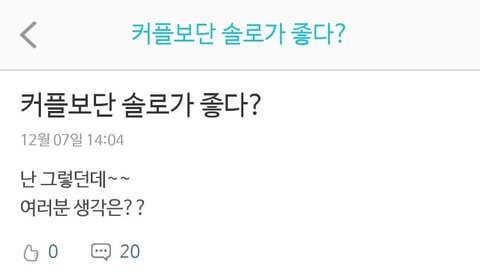 커플보단 솔로가 낫다? 어떻게 생각해??