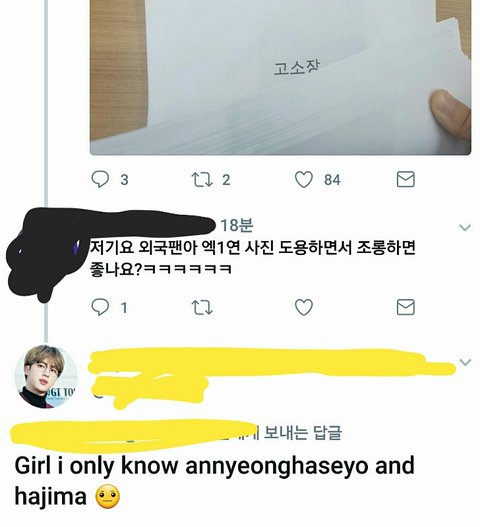 엑연거 사진 도용해가서 우리해외팬 조롱하길래 뭐라했더니 안녕하세요랑 하지마밖에 모른데 시 발 왓더뻒 쓰고올까
