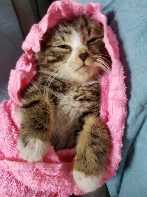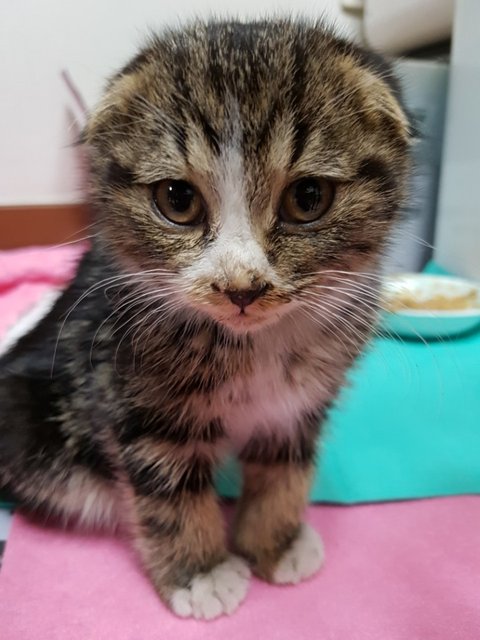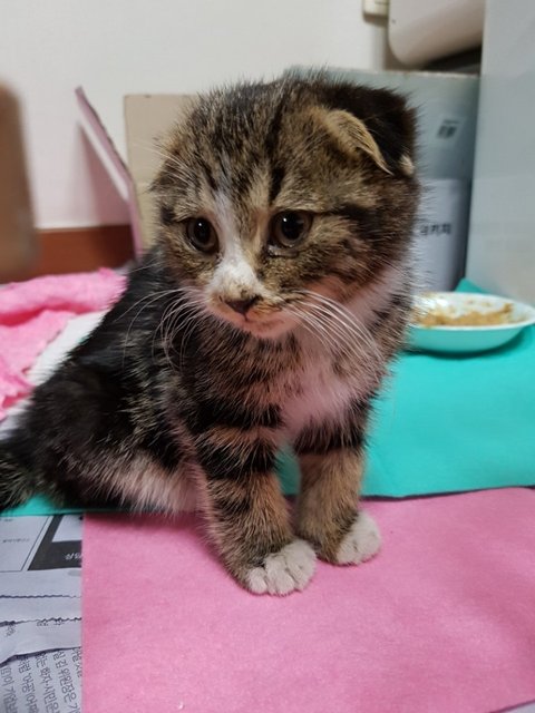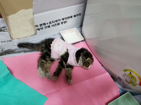 1개월 정도 된 것 같고, 몸이 많이 마른 것 외에 문제는 없어 보인다 하셨습니다.