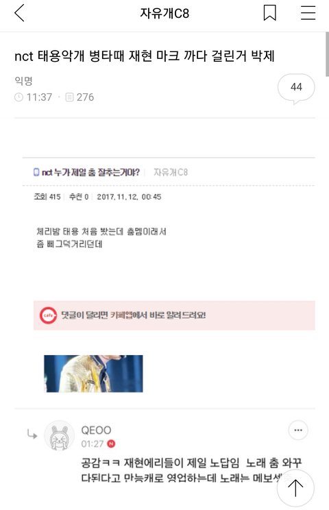 여기 진짜 태용악개 소굴이라니까ㅋㅋㅋ진심 다른애들은 증거도 없이 누구악개거리고 추천 20넘고 이러는데 태용은 악개짓 아무리걸려도 자칭 '올팬'이 다른멤버 패도 감싸줌