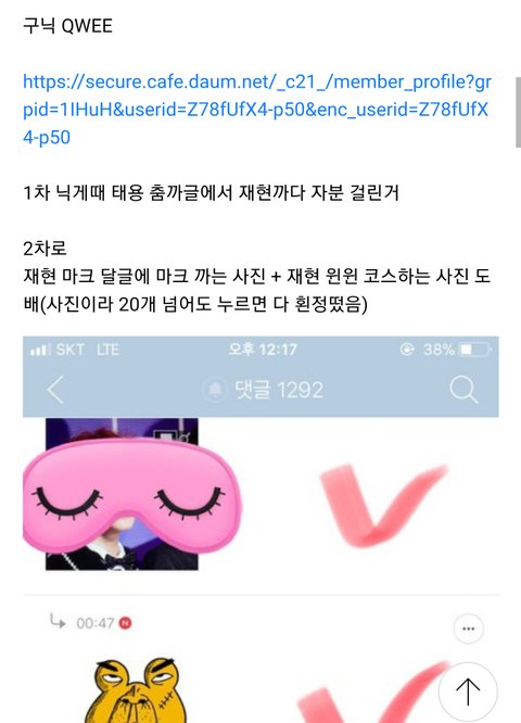 저렇게 회원정보까지 박제되고 확실한데 부정하면서 악개쉴드치는거보니 일반 태용팬들도 악개네