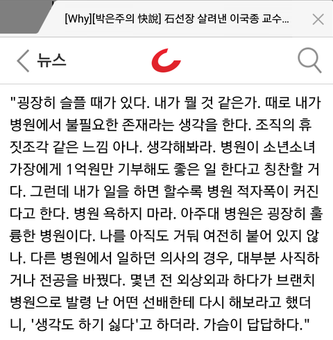 원문보기: 이국종 교수님 인터뷰..