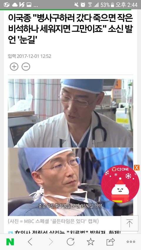 어..우선 나로 말할 것 같으면~ 나도 이국종 교수님에 대해 안지 얼마 안됐어! 몇달전에 실시간검색어에 '북한병사 귀순'이 있어서 클릭하다가 수술을 집도하신 분이 이국종 교수님이라는 걸 알고 '아 그렇구나 꼭 살려내셨으면 좋겠다..' 했을뿐이야.