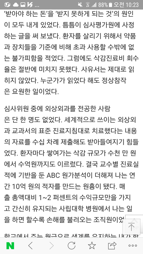 왜 환자를 치료하면 할수록 병원이 적자인지 여실히 드러나 있는 그런 글들입니다.
